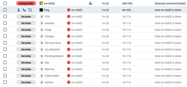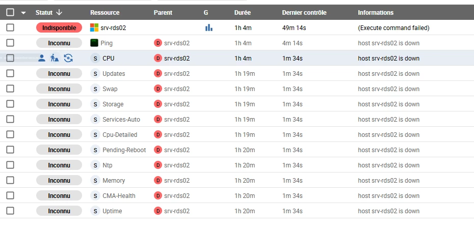 J’ai fait mes tests en NO TLS et toutes mes commandes de vérifications marchaient mais dès lors que je passe en TLS insecure, toutes mes commandes de vérifications passent en “Host {...} is down” et ma commande de vérification de l’hôte elle passe en execute command failed (OS-Windows-Centreon-Monitoring-agent-Host-Alive). Pourtant voici ce que me remontent les logs sur l’hôte :