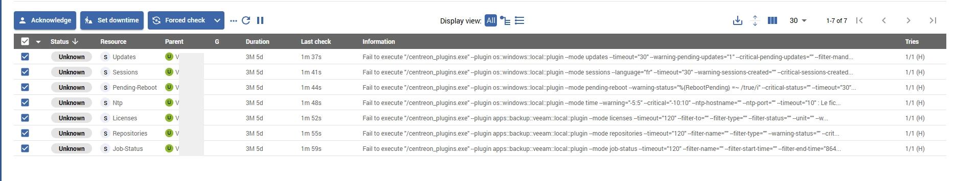 [2026-03-11 13:52:19.641] [error] [check_exec.cc:112] serv Updates fail to execute "/centreon_plugins.exe" --plugin os::windows::local::plugin --mode updates --timeout="30" --warning-pending-updates="1" --critical-pending-updates="" --filter-mandatory: Le fichier spécifié est introuvable