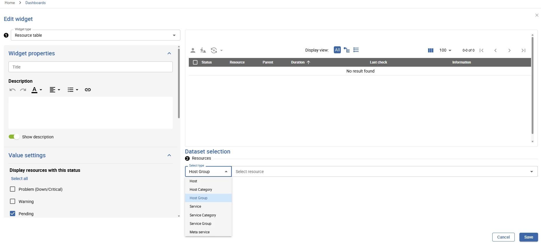 I would like to suggest to add an additional type in Dataset selection of resources for Resource table widget for dashboard.
