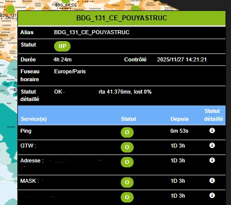 Actuellement, pour afficher des informations complémentaires sur un hôte dans map, nous utilisons de façon détournée les services par hôte (cf capture ci-dessous), mais on s’est dit que ça serait tout à fait imaginable d’utiliser des macros et de pouvoir en récupérer la valeur dans cette bulle :