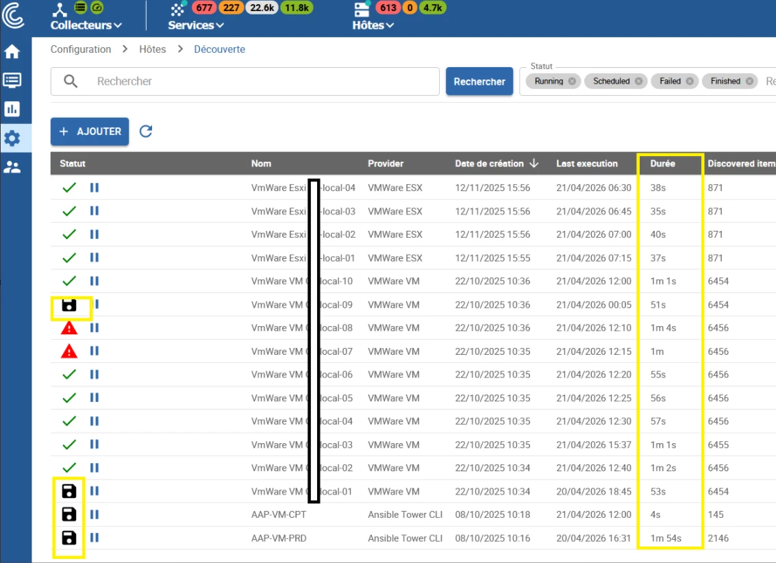 I’m facing an issue with discovery jobs stuck in Running state on my Centreon platform.