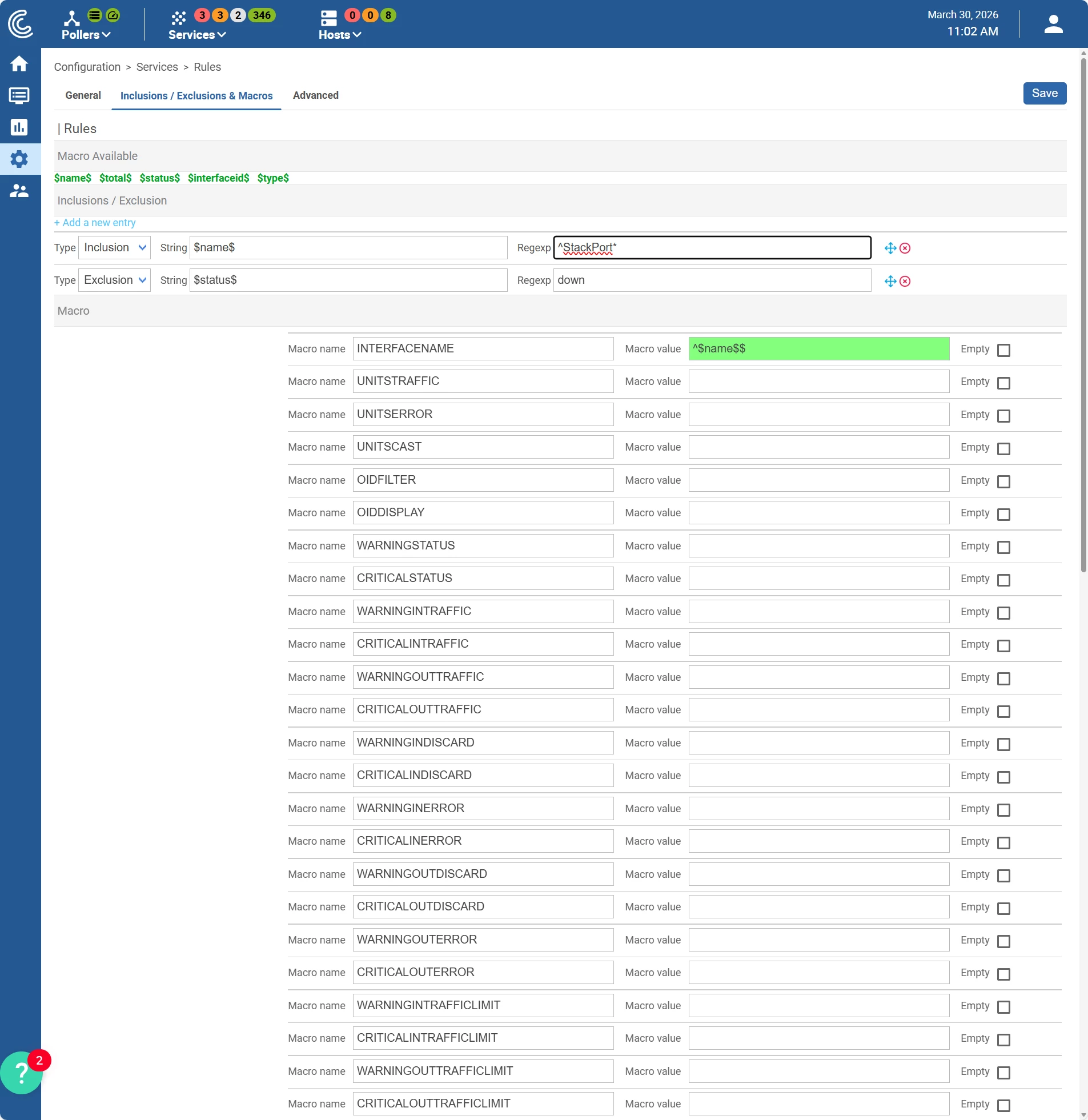 • I created a discovery rule to include only interfaces with names containing StackPort.
