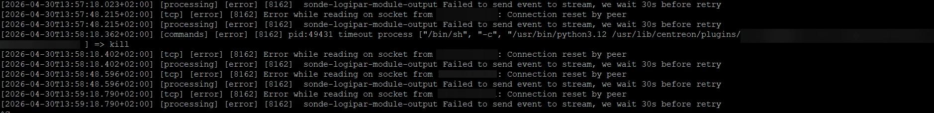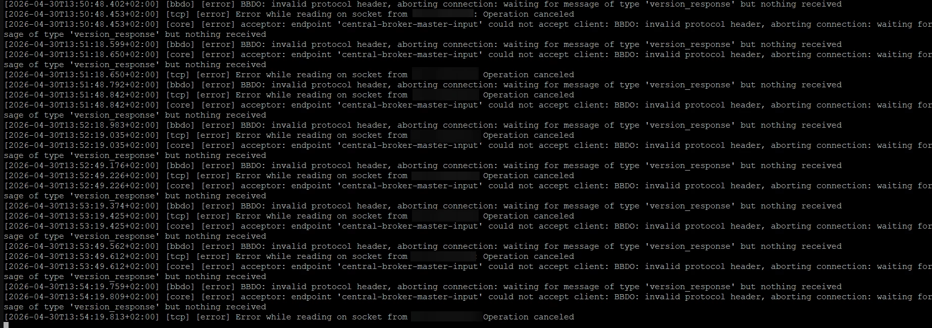 After investigating and conducting extensive research, particularly in the logs, I'm seeing errors when reading the socket data coming from the poller's IP. Here's an excerpt: