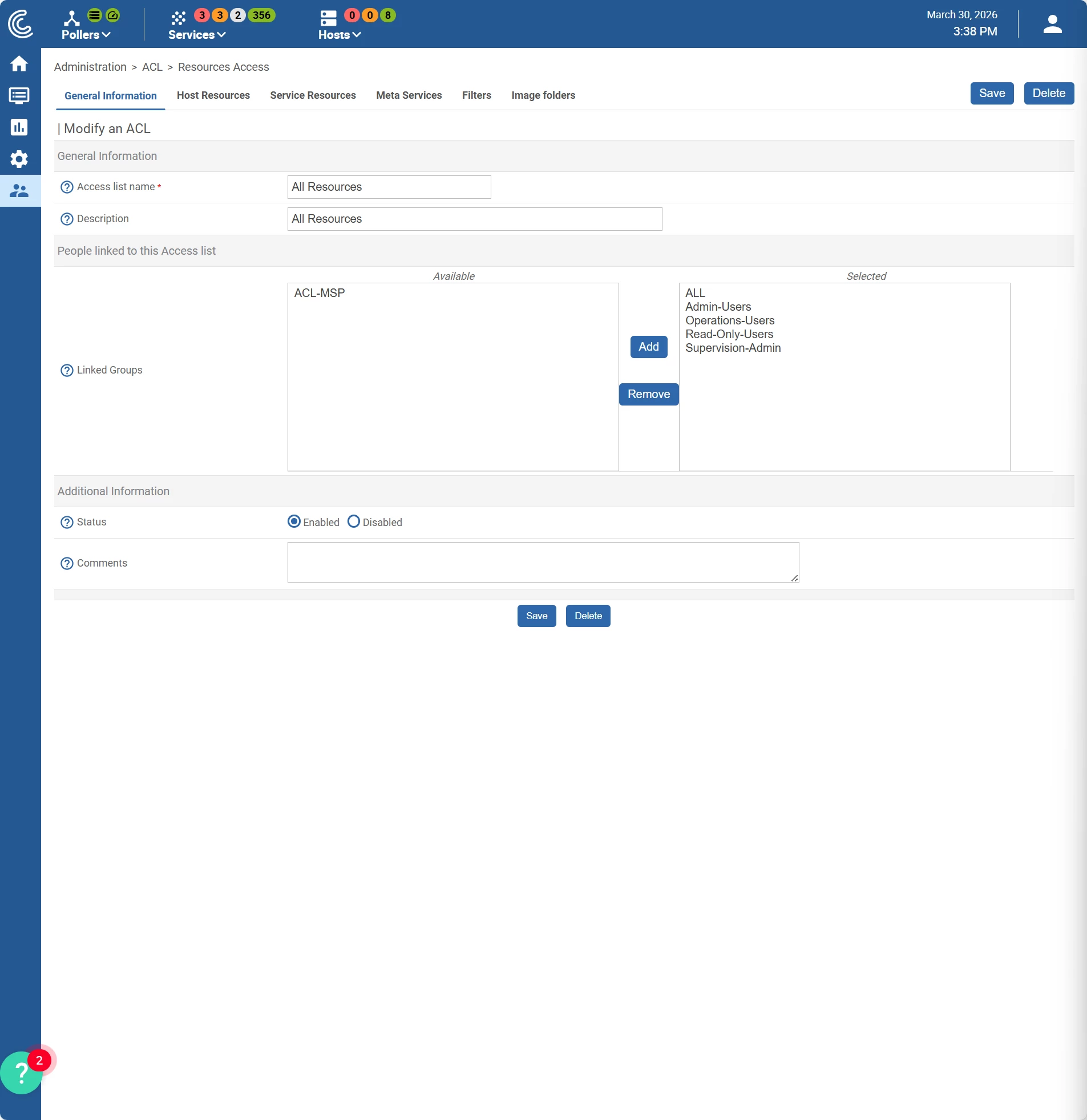 Newly discovered services should automatically be visible to users who are linked to the “All Resources” ACL, without requiring a manual ACL reload.