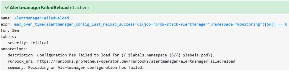 For exemple, If i use the name AlertmanagerFailedReload for this alert :