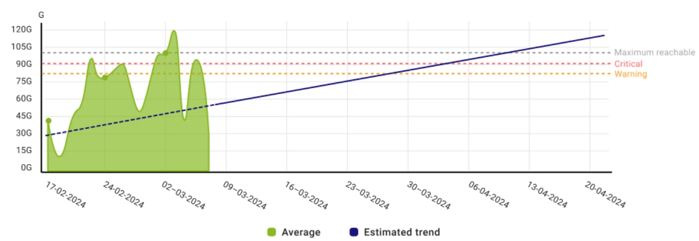 Metric Capacity Planning: displays the future evolution of a metric in relation to its history using linear regression.
