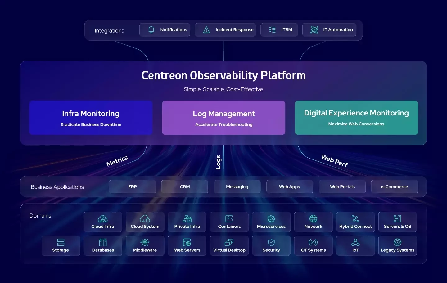 In early October, Centreon announced the launch of the Centreon Observability Platform, a new, simple, scalable, and cost-effective approach to modern IT observability. This platform unifies three complementary products - Centreon Infra Monitoring, Centreon Log Management, and Centreon Digital Experience Monitoring (DEM) - to provide end-to-end observability from Cloud infrastructure to user experience. Read the Press Release.